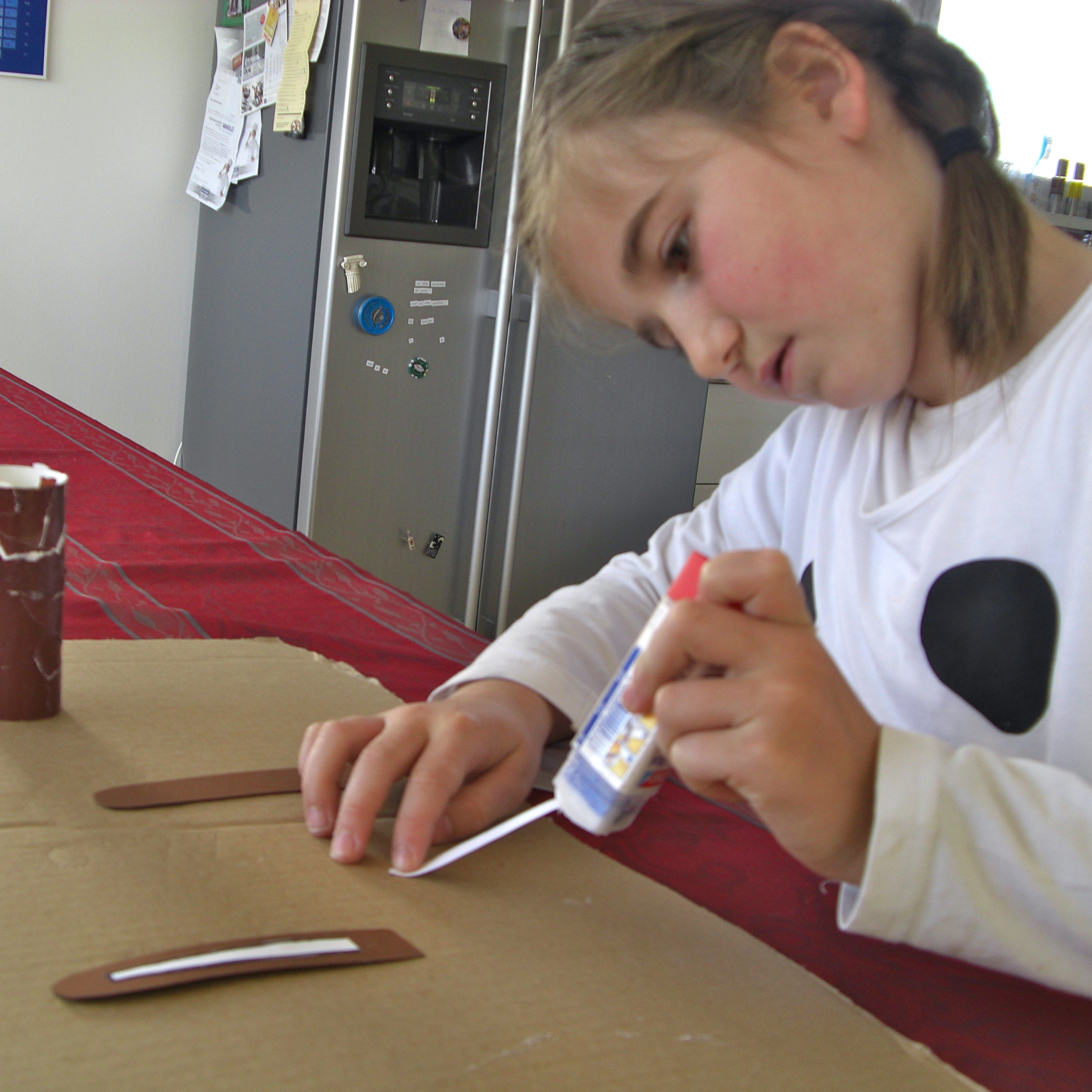 Was braucht man dafür: Toiletten- oder Küchenpapierrollen, Ton-, Glanzpapier oder Fotokarton in Hasenfarben (braun, schwarz, grau, weiß, lila …), Kleister oder Kleber, Schere, ggf. Lineal