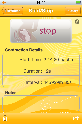 Die zweite Funktion war in der Nacht der Nächte: das Stoppen von Wehen. Man glaubt zwar das ein einfacher Blick auf die Uhr reichen sollte, aber man ist schon etwas nervös und vergisst dann doch mal wann die Wehe losging, während man die Koffer packt oder versucht vorsichtig zu fahren. Alles was hier etwas ablenkt auf dem Weg ins Krankenhaus kann man nur empfehlen. Meine Frau hat selbst in dieser Situation meine Affinität zur Technik akzeptiert.