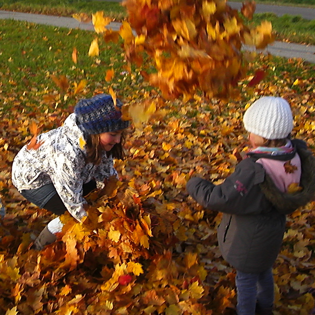 - Blätterdusche: die gesammelten Blätter in die Luft werfen und sich berieseln lassen