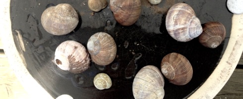 Über den Winter sind die Schnecken aus ihren Häusern gezogen, so dass wir diese Schätze jetzt sammeln und ein Schneckenmandala bauen.