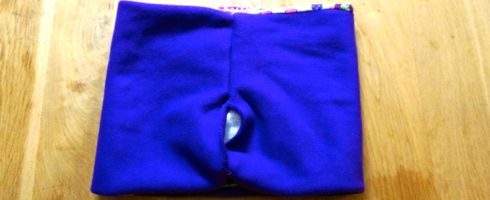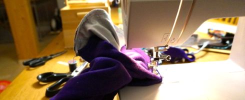 Im Anschluss daran alles auf rechts drehen. Jetzt müssen nur noch die Enden zusammen genäht werden. Dafür die Kanten aneinander legen und zu nähen. Hier haben wir beim Fleece (ca. unteres Drittel) gestartet und Richtung Jersey genäht.