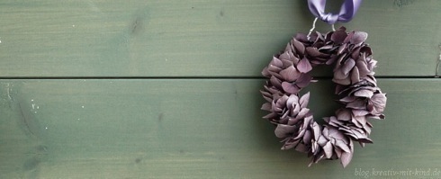 Heute gibt es mal eine Bastelanleitung für einen Türkranz aus Hortensienblüten. Nicht unbedingt mit Kindern zu gestalten, aber eine schöne Dekoration.
