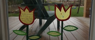 Damit es nicht nur draußen blüht basteln wir heute ein Blumenfensterbild. Hierfür nutzen wir das Klebeset, dass uns UHU kostenlos zur Verfügung gestellt hat.