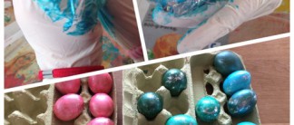 Eine ganz einfache und auch für kleinere Kinder gut geeignete Methode um Ostereier zu färben ist diese in Farbe zu schütteln. Was braucht man dafür: