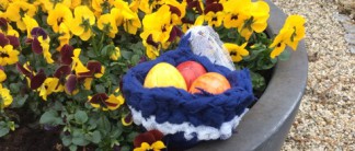 Auch zu Ostern kann gehäkelt werden. Für dass gehäkelte Osternest habe ich Stoffstreifen in ca 1 cm Breite geschnitten und mit einer großen Häkelnadel (Start 4 Luftmaschen) in halben Stäbchen gehäkelt.