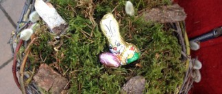 Der Osterhase kommt ja jetzt bald, deswegen haben wir heute ein Osternest aus Zweigen gebastelt.